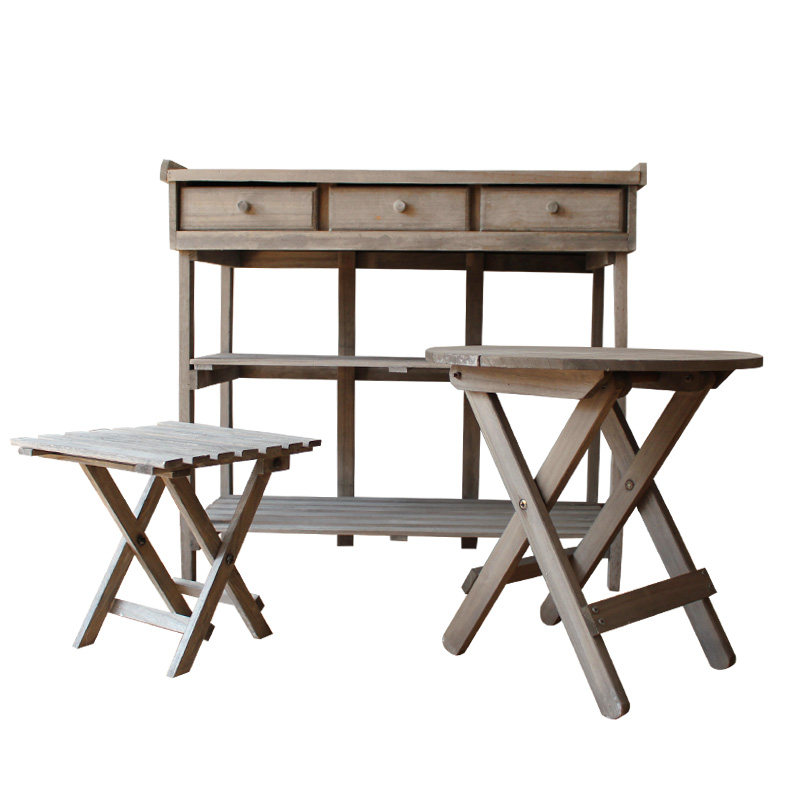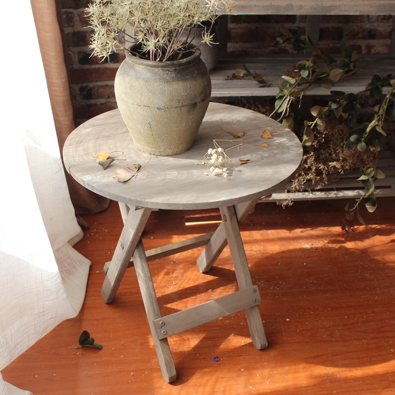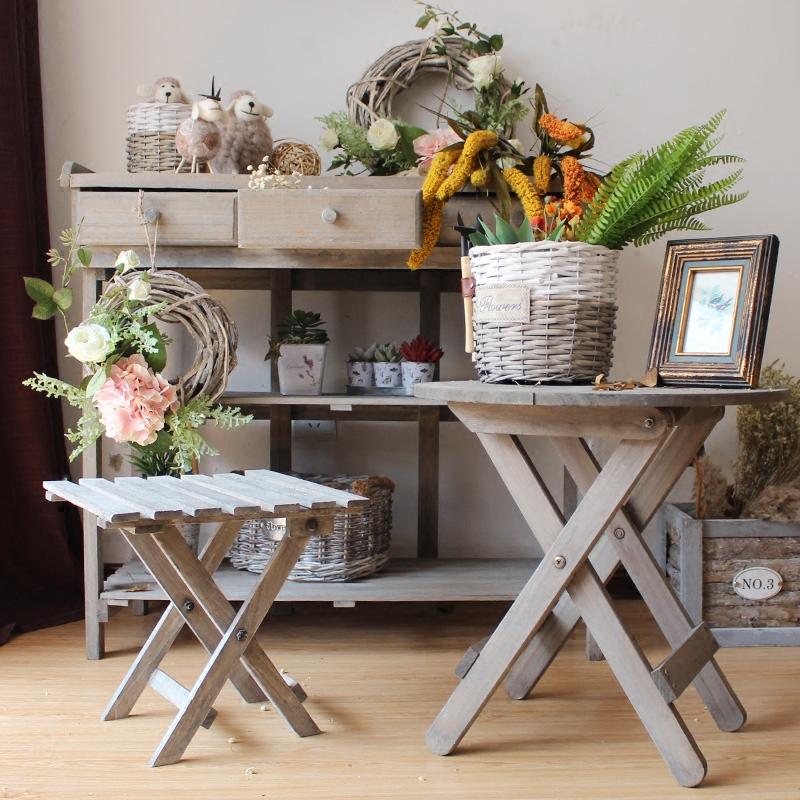 Find a solid wood tea table flower stand folding chair Stool Round Table Gardening Garden Supplies Retro made to the old countryside