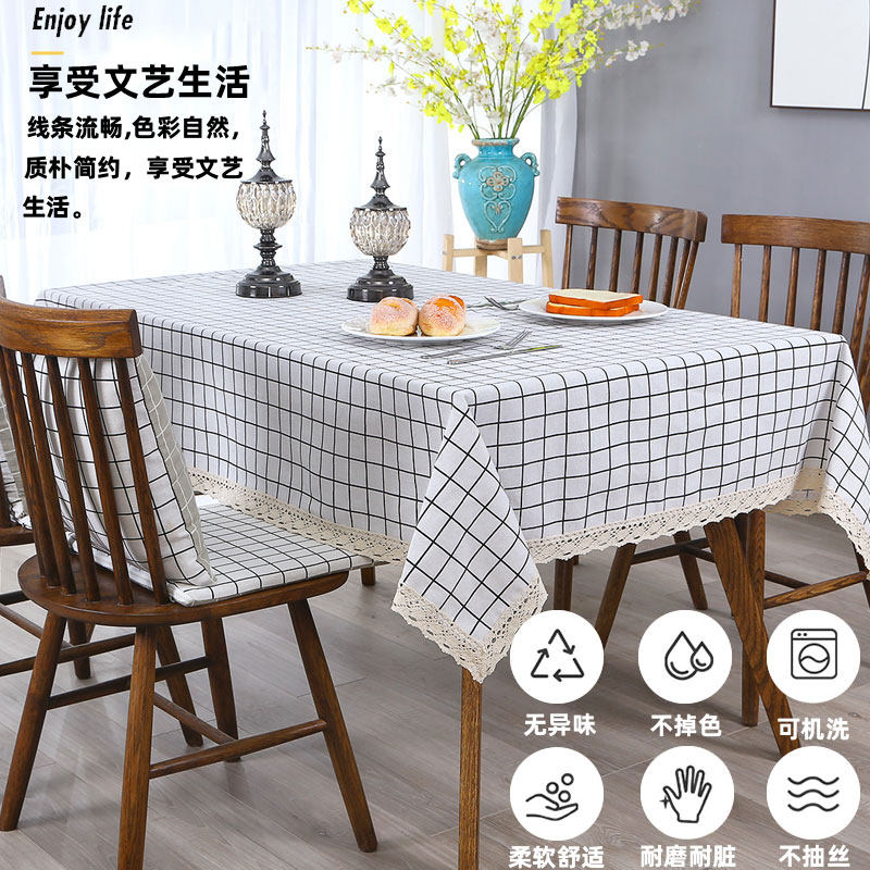 Tablecloth fabric cotton linen small fresh plaid tablecloth rectangular coffee table tablecloth net red pastoral tablecloth ins style