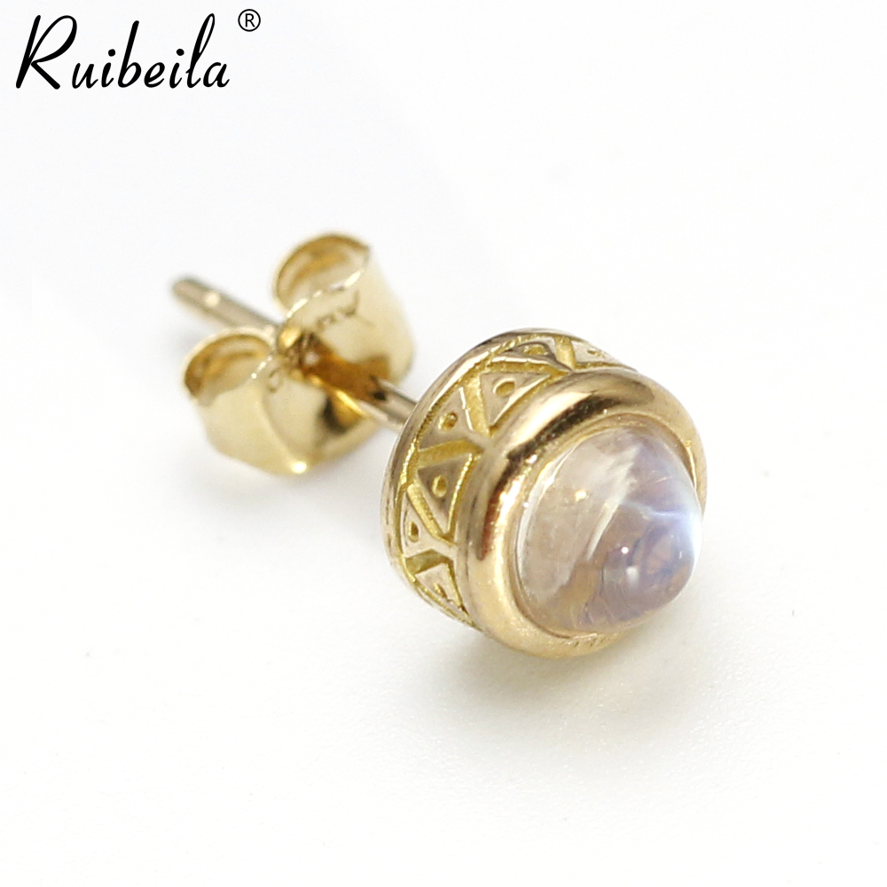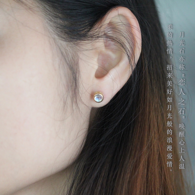 ruibeila Japanese and Korean fashion personality 18K gold blue moonstone earrings men and women simple temperament small round earrings