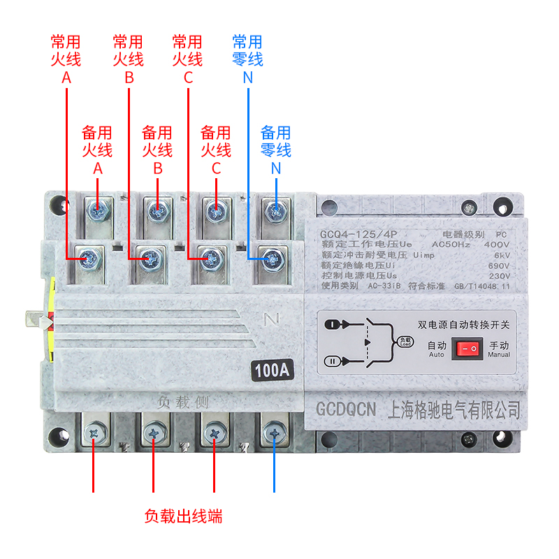 PC stage Dual Power Supply Automatic converter 380V three phase four wire 125A250A400A630 automatic switch