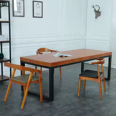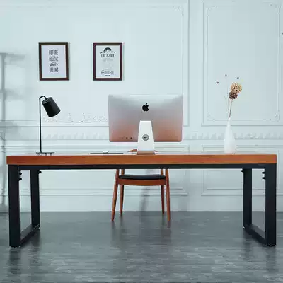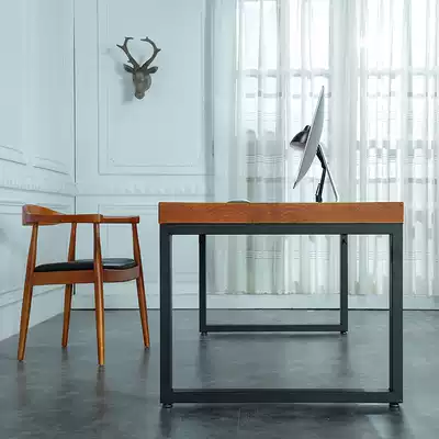 Modern simple wrought iron solid wood desk computer desk desk desk table desk conference retro table