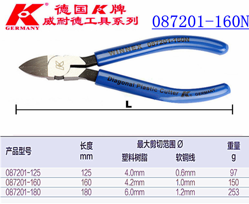 Diagonal pliers German K brand 087201 industrial thin section labor-saving plastic nozzle pliers cutting pliers electrician scissors 8 inch