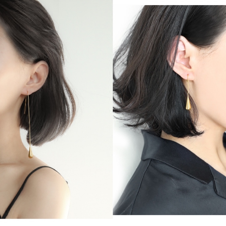 18k gold plated niche commuter wild Europe and the United States extremely simple temperament personality drop earrings long version of high-end sense earrings
