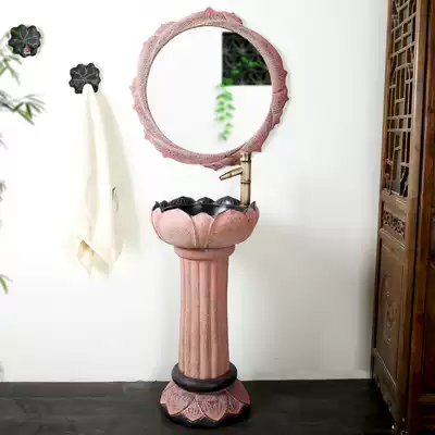 Pillar Sink Pink Lotus mirror single lotus leaf towel hanging faucet one column basin mirror bamboo faucet two towel hanging