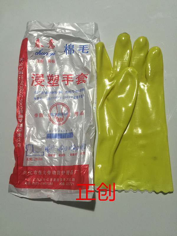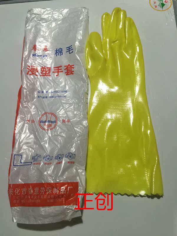 Spring Cotton Wool Plastic Gloves Acid and Alkali Resistant Oil and Oil Resistant PVC Dip Plastic 45cm Industrial Waterproof and Wear-resistant Gloves
