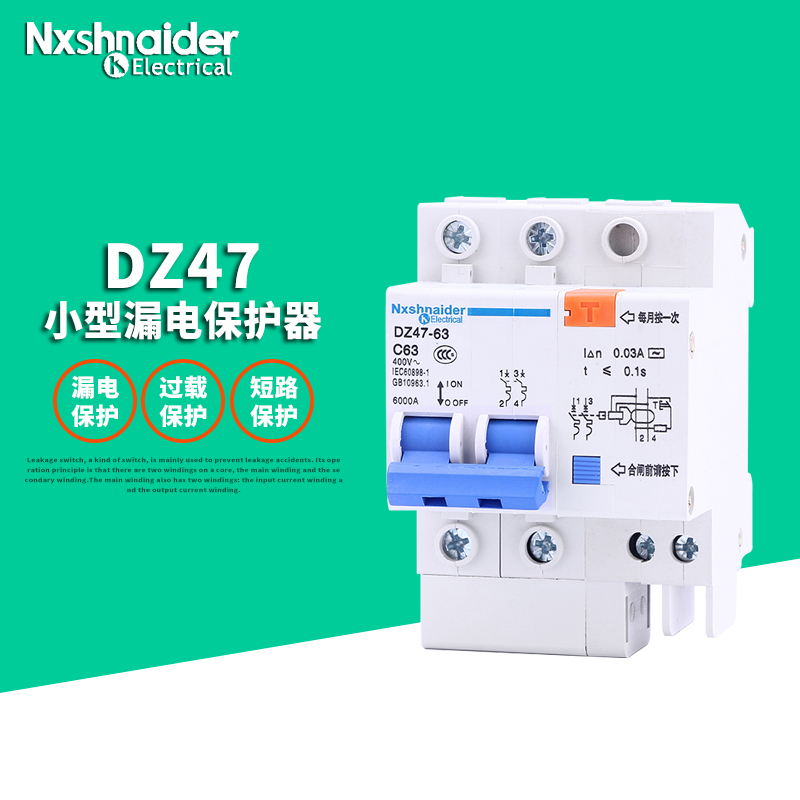 Leakage protector household 220v circuit breaker main switch electric water heater air conditioner special anti-safety DZ47 open