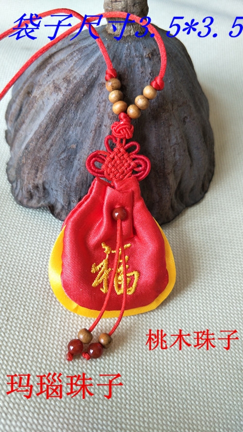 Original lanugo hair bag fetal hair bag peace amulet bag cinnabar bag necklace lanugo incense pill bag blessing word bag peach wood empty bag