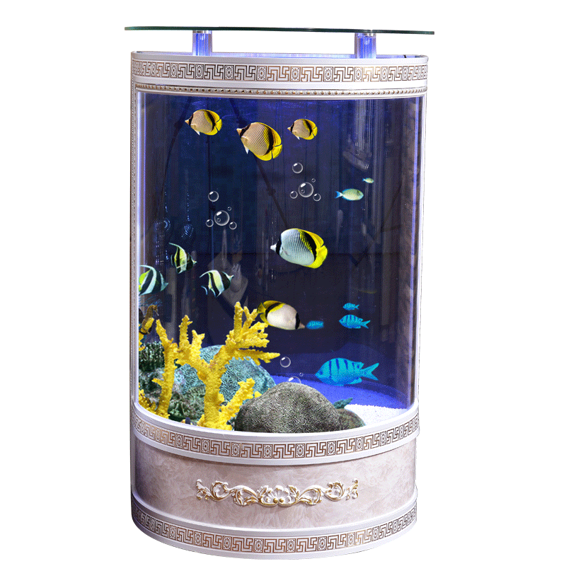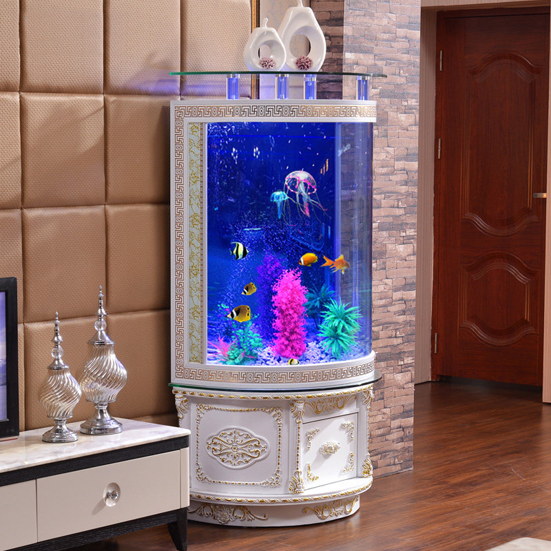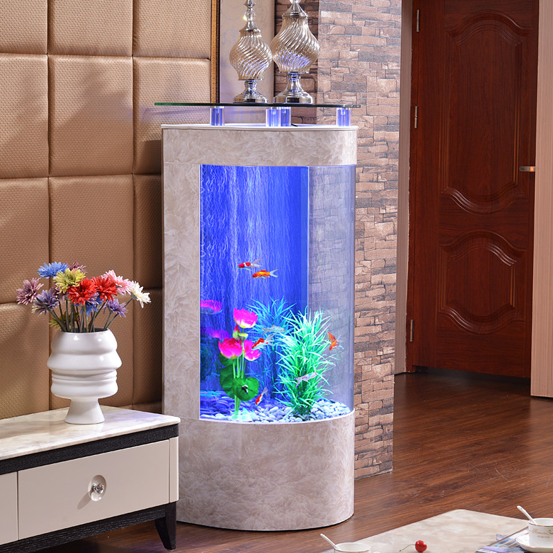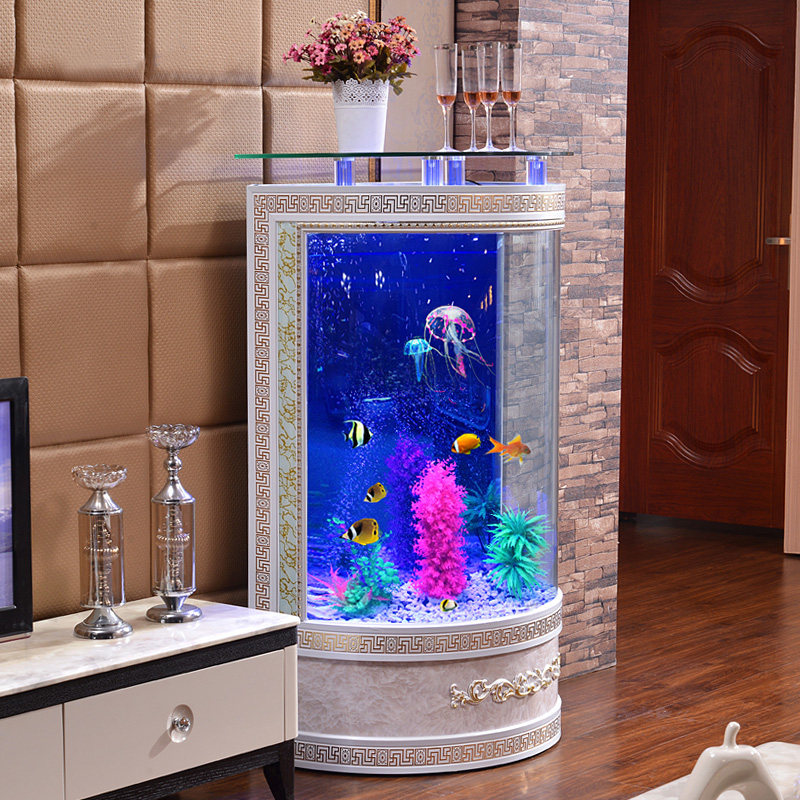 Semi-circular European-style goldfish tank aquarium living room household floor-to-ceiling glass cylinder medium-sized ecological water-free water-changing landscaping