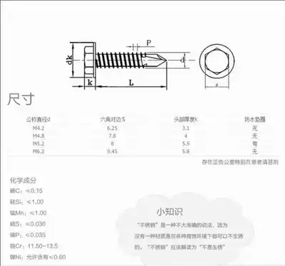 M4 2 drill tail self-tapping screws Hexagon drill tail wire screws 410 stainless steel