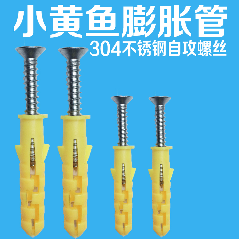 Small yellow fish plastic fluffy pipe expansion screw puffy screw puffy plug with self-tapping nail 6mm8mm