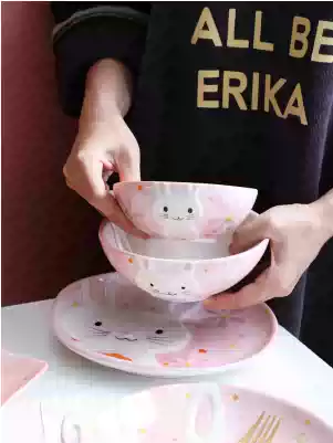 Cute cartoon children's bowl chopsticks set household ceramic tableware creative students beautiful eating bowl gifts
