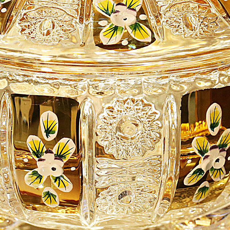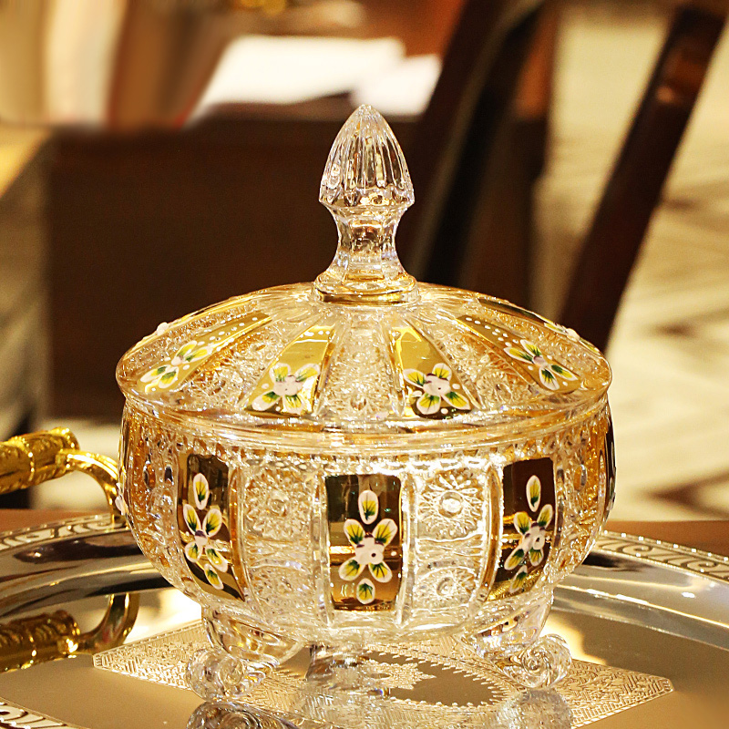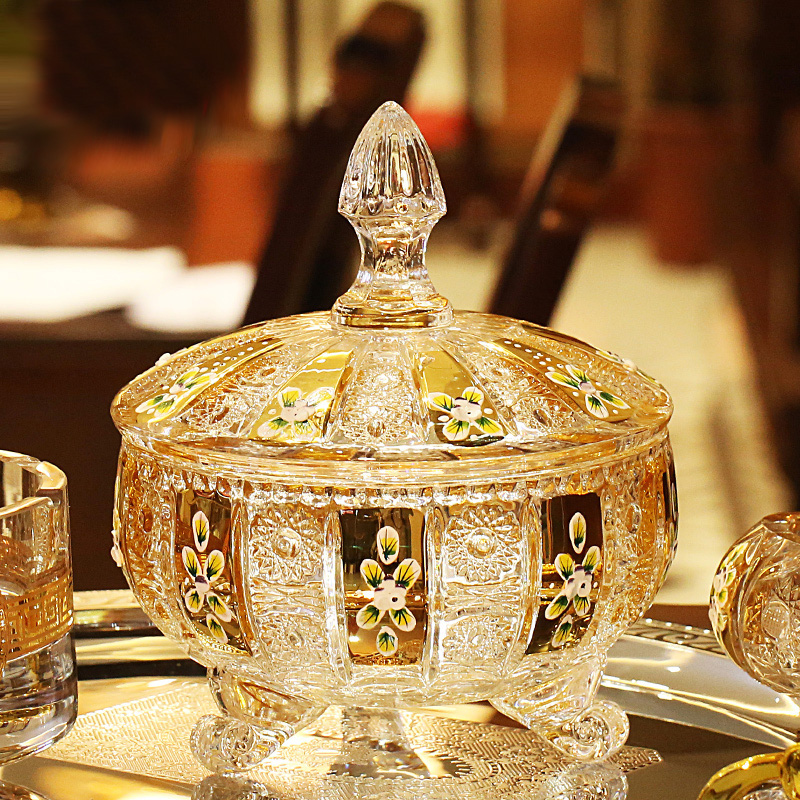 Czech enamel gilded craft crystal glass sugar jar Dried fruit snack fruit bowl Candy box fruit cup with lid