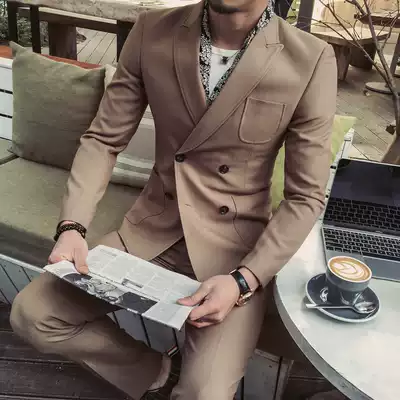 Business dress double-breasted suit suit suit men Korean version of slim two-piece suit wedding groom best man dress