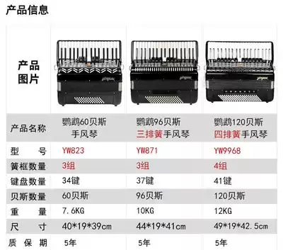Parrot accordion examination Playing beginner accordion 60 96 120 bass three or four rows of spring accordion