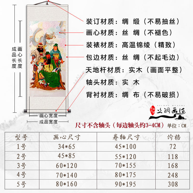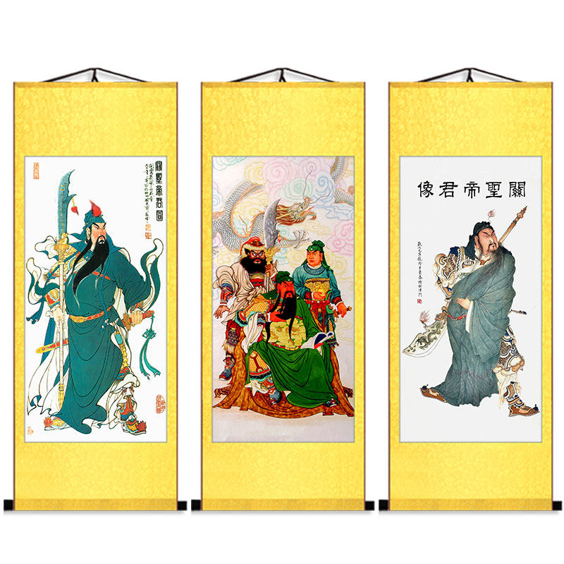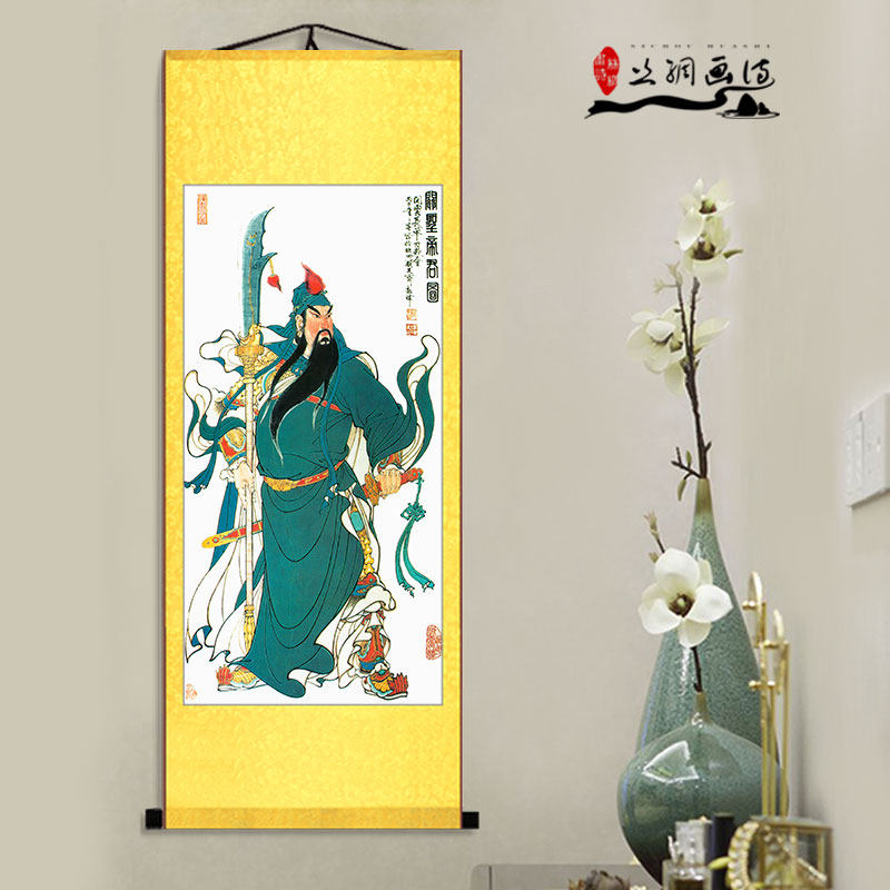 Guan Gong Guan Yu silk scroll hanging painting Office Lucky charm Evil evil Wu God of wealth Feng Shui Decorative figures Chinese painting town house