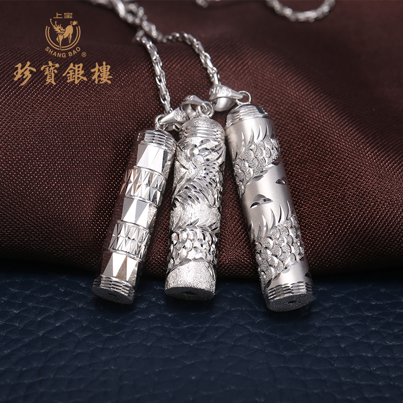 Precious Treasure Silver Building Platinum Pendant Men PT950 Dragon Ripples cylindrical male and female Platinum Necklace Single Pendant