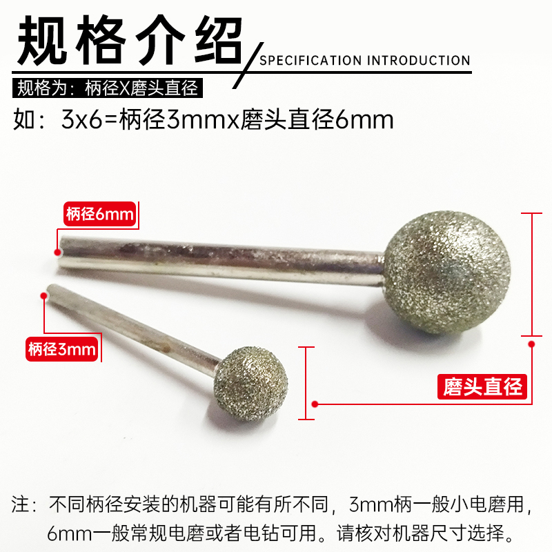 Stone jade carving emerald marble polished plated diamond sand spherical round grinding rod electric grinding engraving grinding head