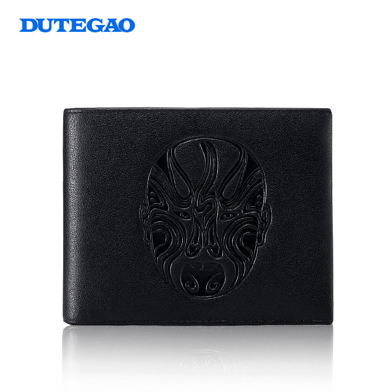 DUTEGAO fashion face mask men's short leather top layer cowhide horizontal trendy wallet business men's wallet