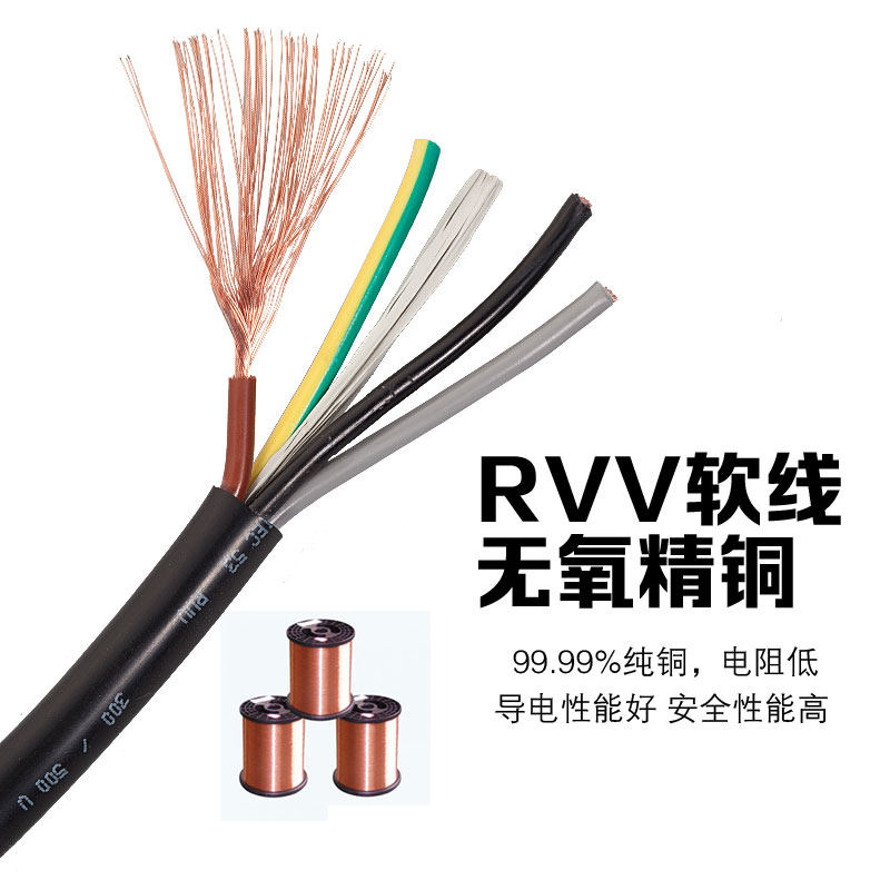 People cable jacket line 2 5 square 4 Core copper wire RVV multi-strand monitoring power cord Soft Wire & Cable Line