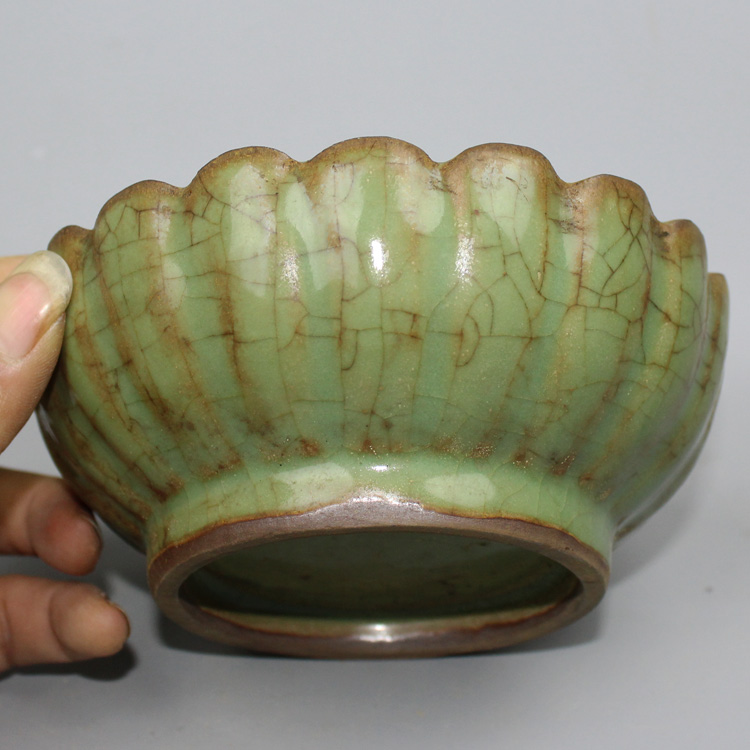 Song Dai Longquan Kiln Flower Mouth Bowl Iron Rust Spot High Imitation Porcelain Ancient Play Antique Collection Boutique Official Kiln Ancient Porcelain