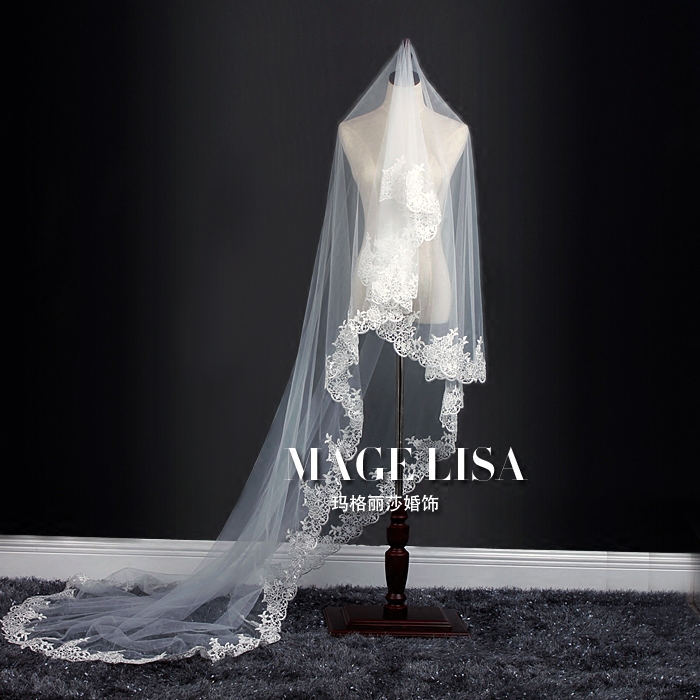 Mag Lisa meritocratic European-style bridal lace floral lace head yarn 1 m 2 m 3 m long version trailing brigade slapping head yarn