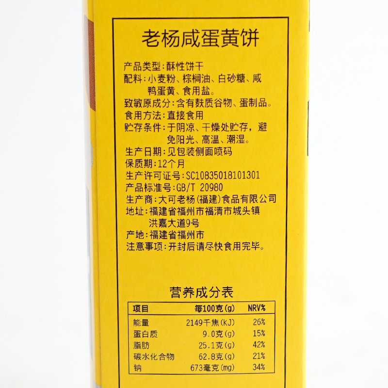 Old Yang salted egg yolk biscuit box net red coarse grain square crisp independent salty crisp office relief snack