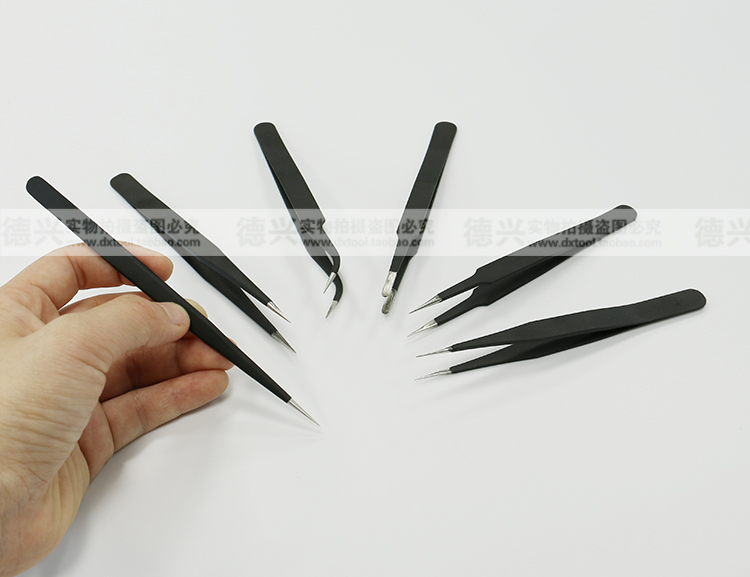 Stainless steel precision tweezers Black anti-static tweezers Curved tip straight flat super tip plus hard metal tweezers set