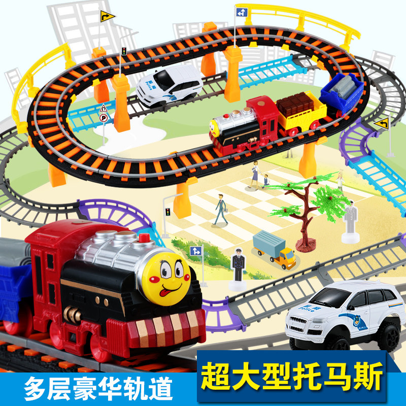 Charging electric railcar children puzzle small train toy high-speed train set cartoon model to send children gifts