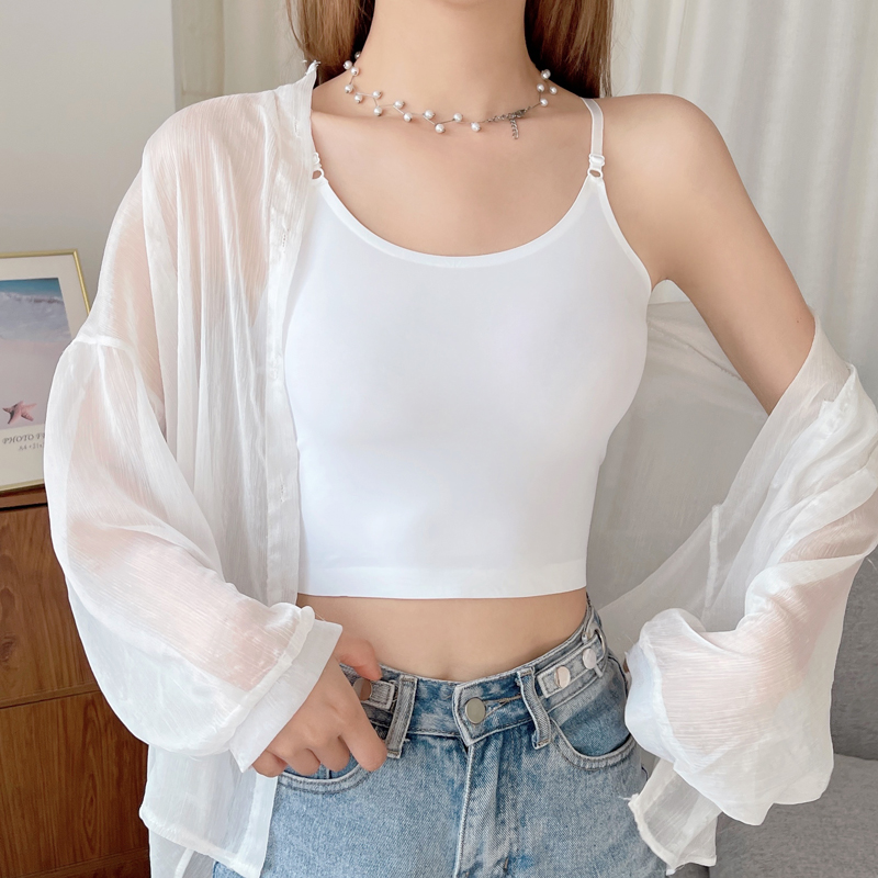 Summer ice wire hanging with vest anti-walking woman with white pupil back wrapped in the chest with thin underwear