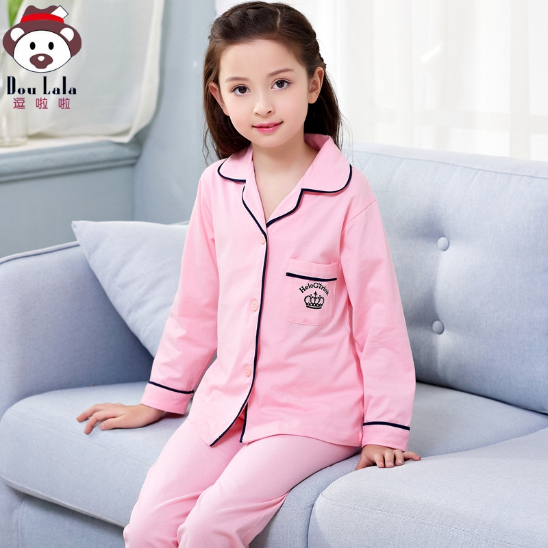 Girl's spring autumn season pure cotton long sleeve child sleepwear 3 little girl 5 CUHK Tong 7 Baby 7 Household Clothing Suit 9