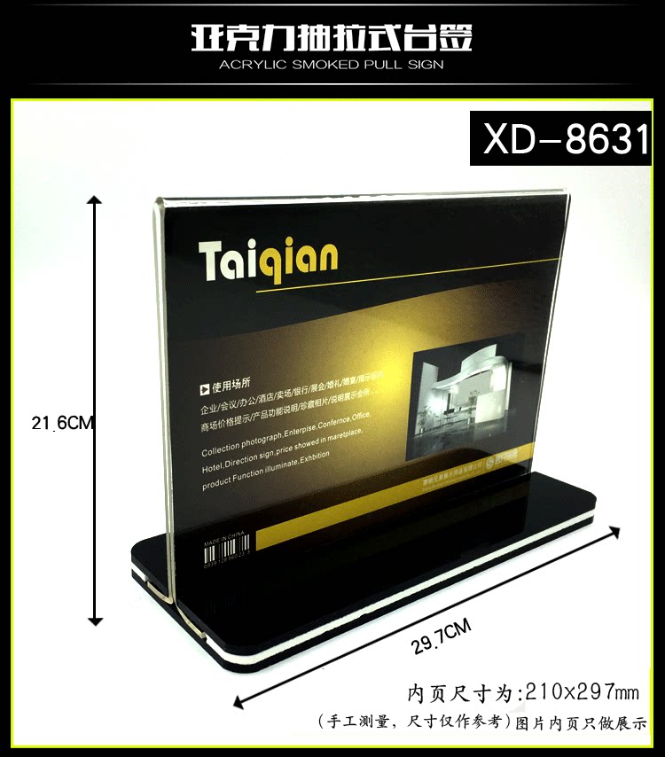 XD-8631A4 transparent upscale acrylic double-sided table card table cards with cards A4 table cards Wine Water cards