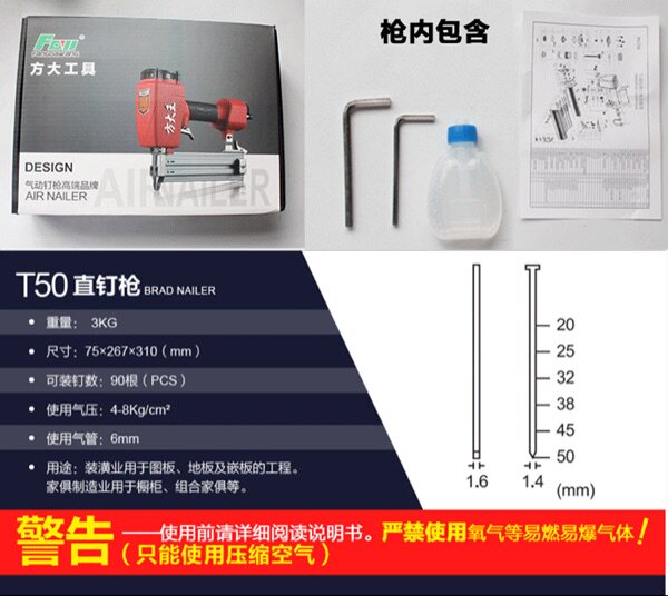 Square king F30 straight nail gun ST64 steel nail gun F30G not stuck nail gun Woodworking T50 nail gun Pneumatic mosquito nail gun