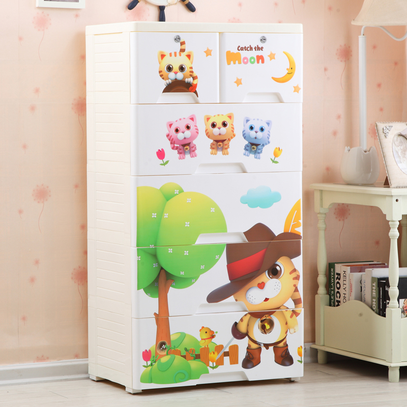 Thickened cartoon children's wardrobe drawer type storage cabinet plastic locker clothing finishing cabinet combination cabinet