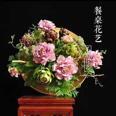 New Chinese style simulation floral silk flower dining table peony large and small decorative fake flower dining table flower placement desktop flowers