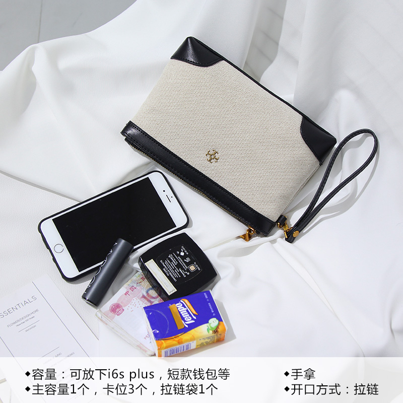 Early season simple cotton and linen canvas clutch bag 2021 new large-capacity small bag female trendy zipper mobile phone coin purse