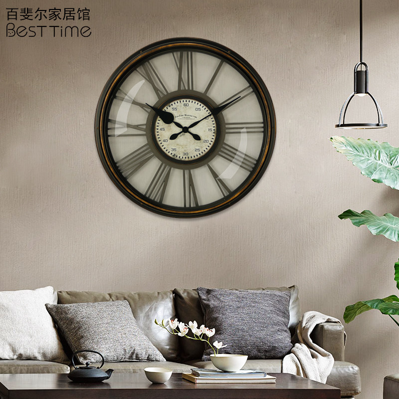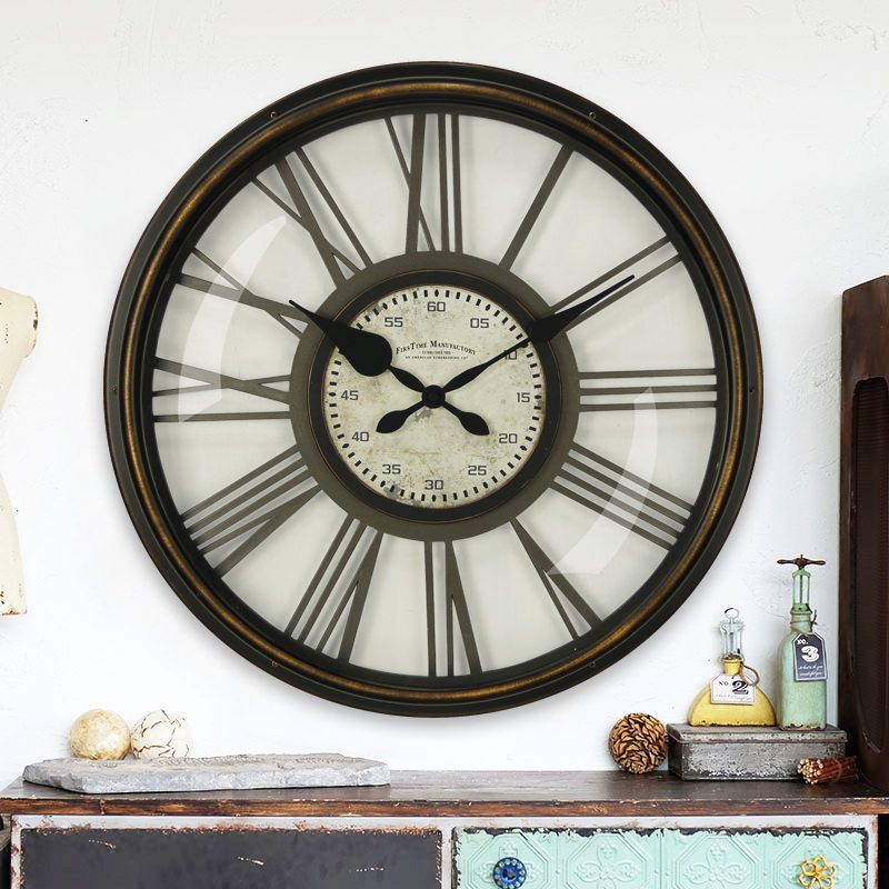 European-style living room vintage wall clock American country wall wall clock creative pastoral industrial style nostalgic silent British