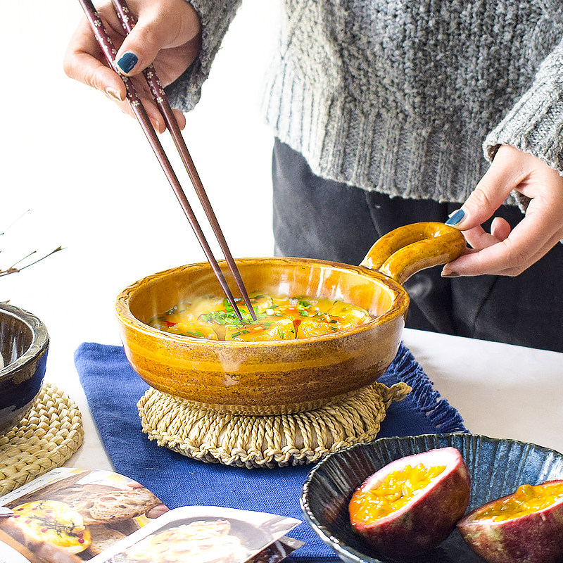 Japan's Hase Garden Earth Pot Iga Roasted Pot Pieces Hand Frying Pot Casserole Dry Roasted Breakfast Pot Cheese Pot Fried Steak