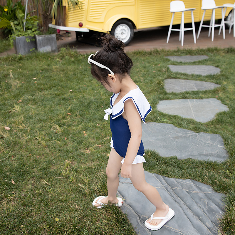 Children's swimsuit Girl one-piece girl swimsuit Cute Japanese navy blue retro navy wind skirt spa bathing suit