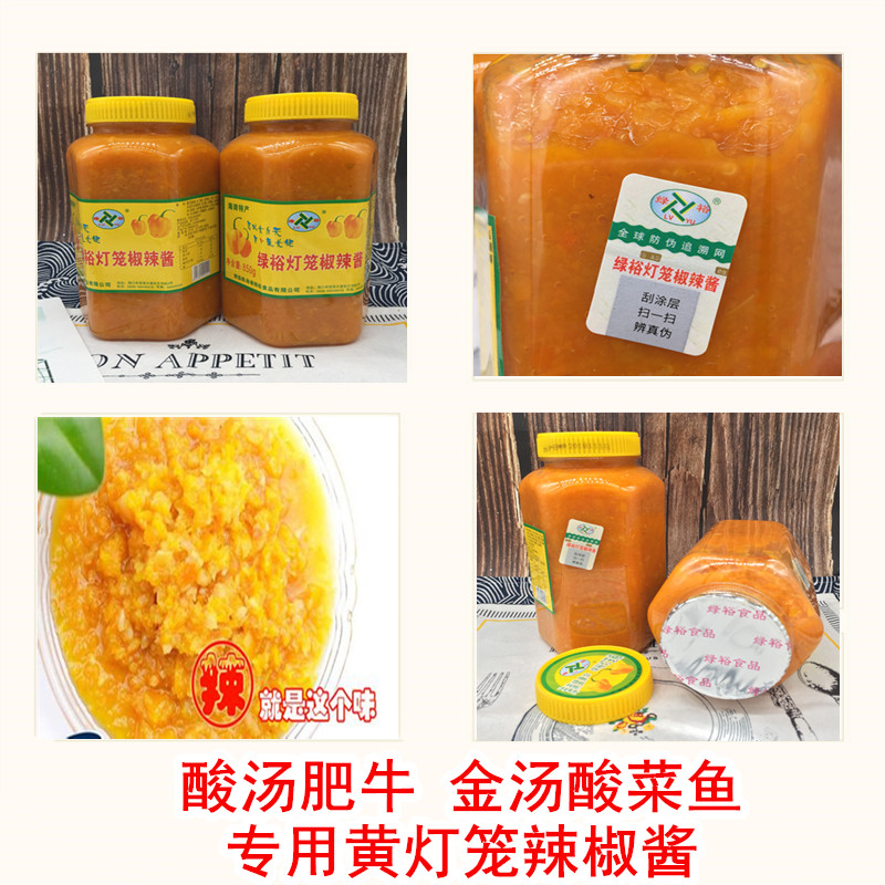 Hainan specialty Lvyuhuang lantern chili sauce 850g x 2 bottles of sour soup, fat beef, golden soup, pickled vegetables, fish, bullfrog