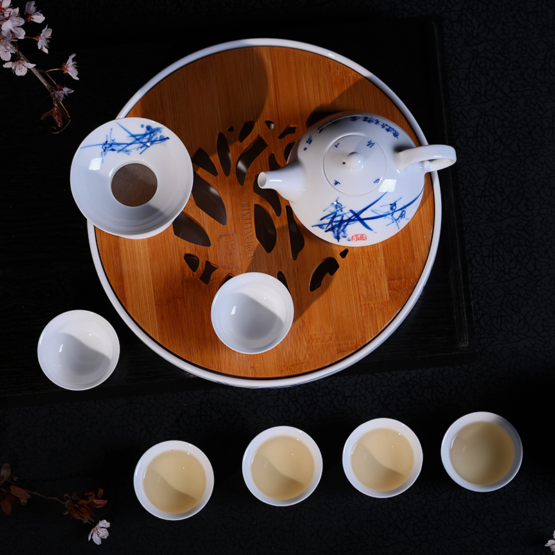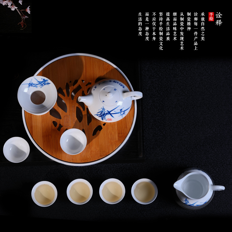 Jingdezhen Gongfu tea with a whole set of hand hand-painted with tea tray Ceramic Tea Set Group Hand Bag Gift Box Packaging