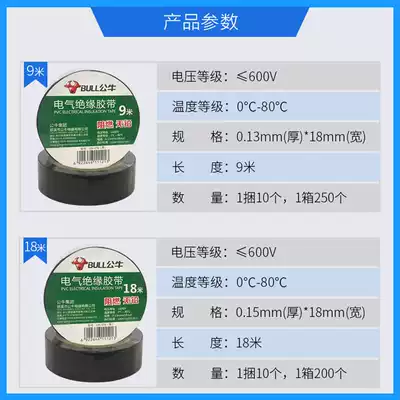 Bull electrical tape PVC electrical tape Insulated electrical tape Black high temperature resistant wire black tape 9 meters 18 meters