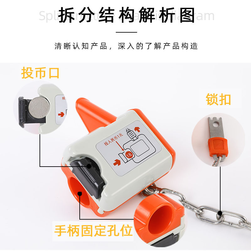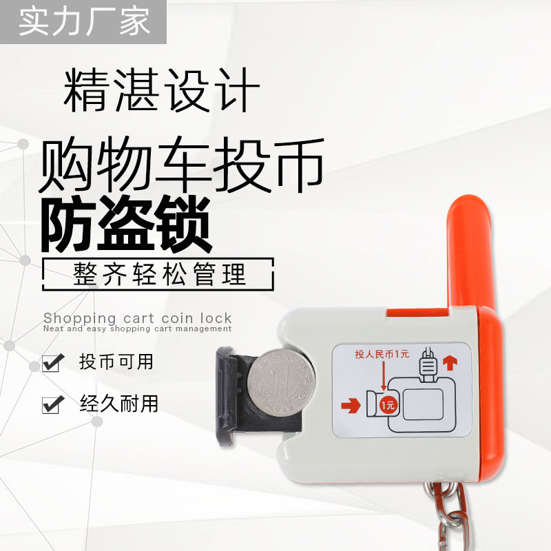 Supermarket cart lock Supermarket cart coin lock plastic lock zinc alloy lock key unlocking tool