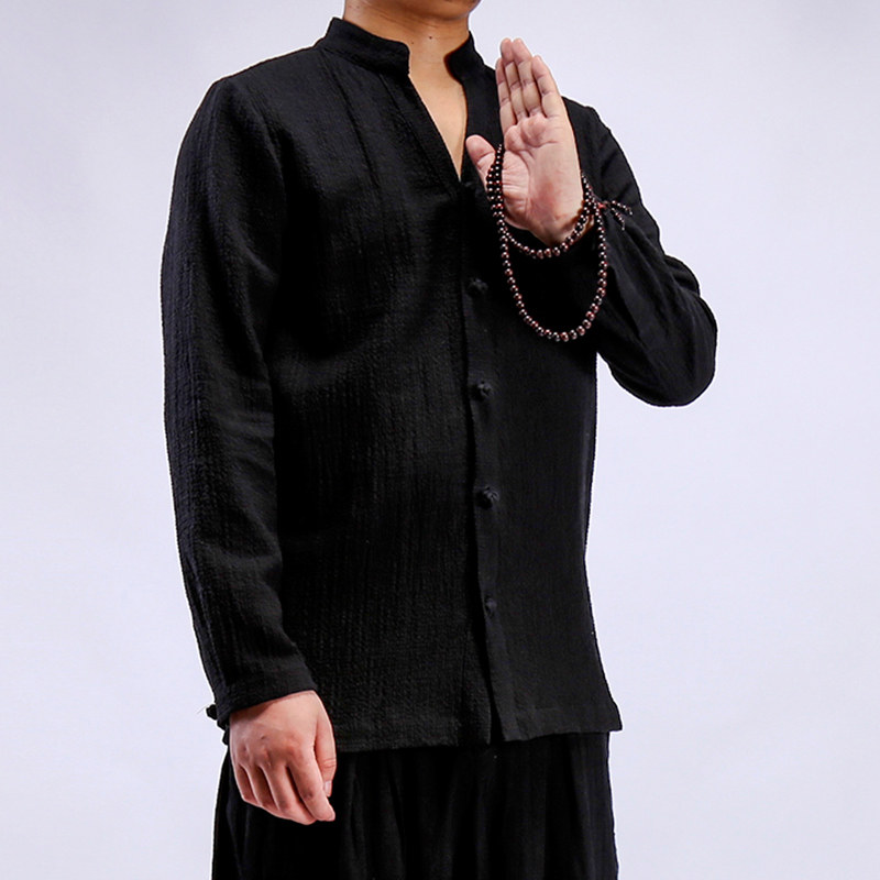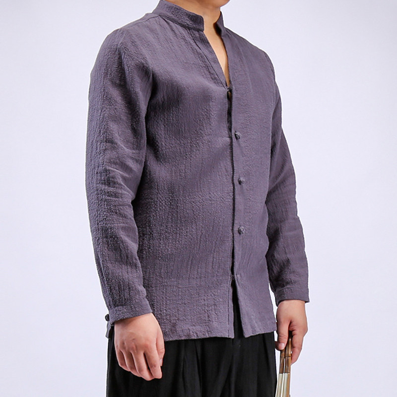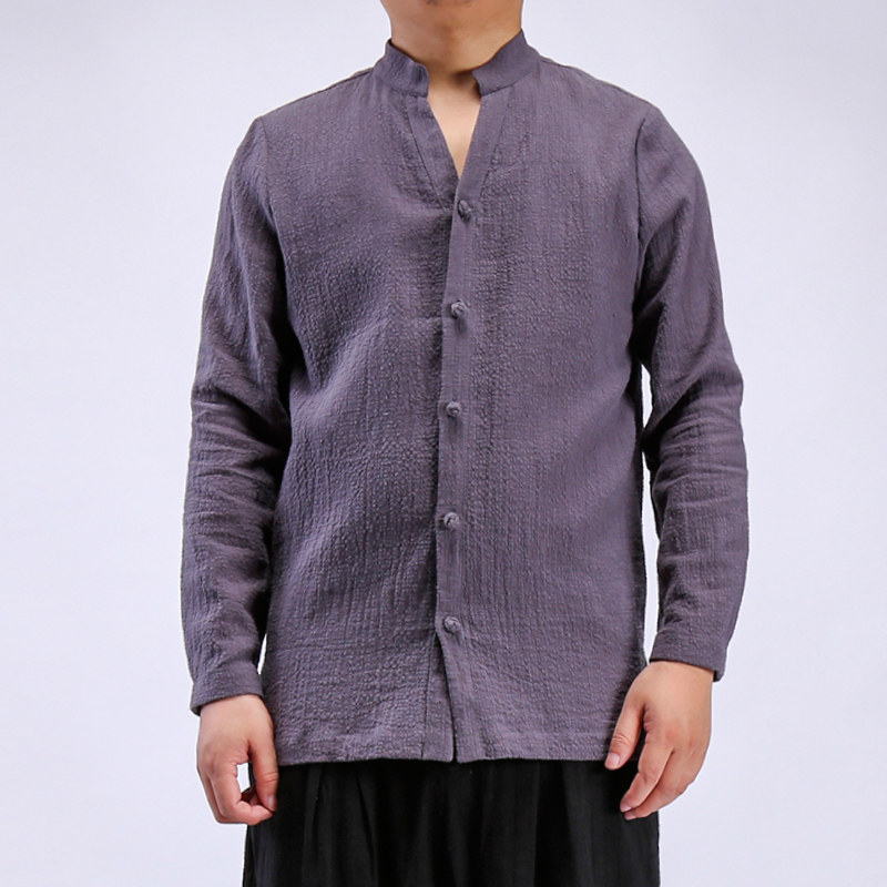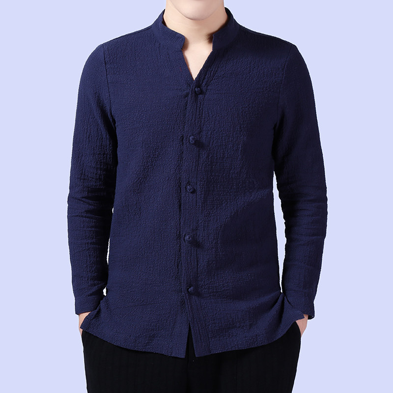 Spring dress Long sleeves Old coarse cloth Dang clothes Men's youth Chinese style Improved Han clothes disc buckle upright collar shirt Güsmane Zen Fu