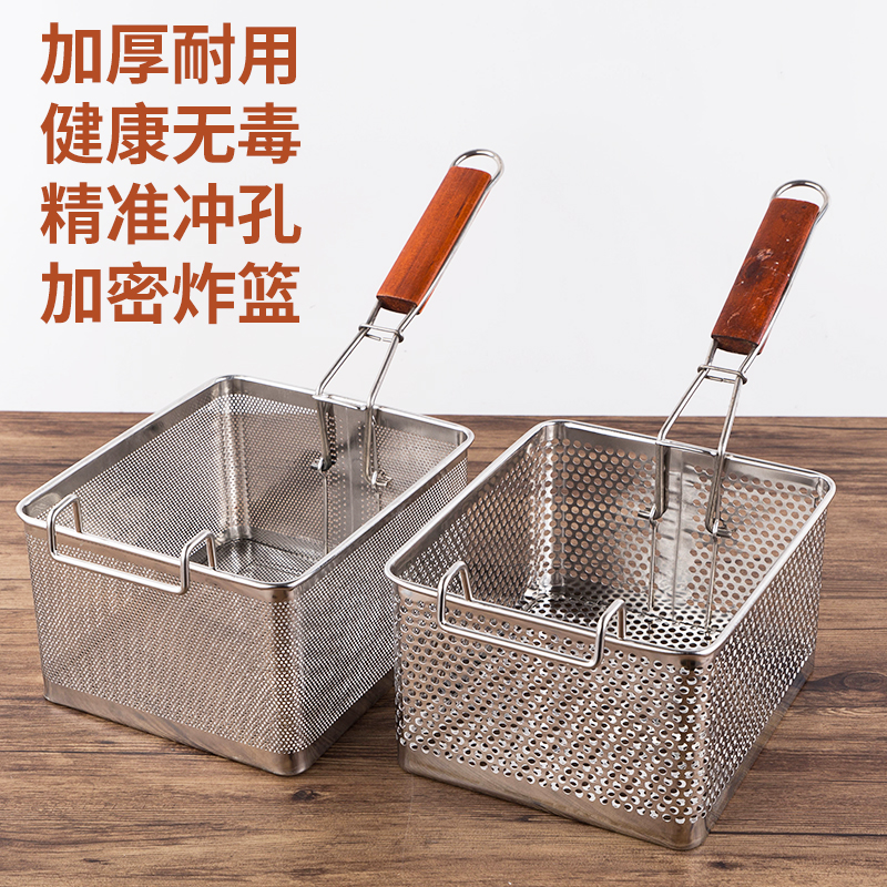 Thickened and reinforced fried mesh screen fried basket French fries fried sieve filter oil sieve stainless steel long fried basket chicken leg basket