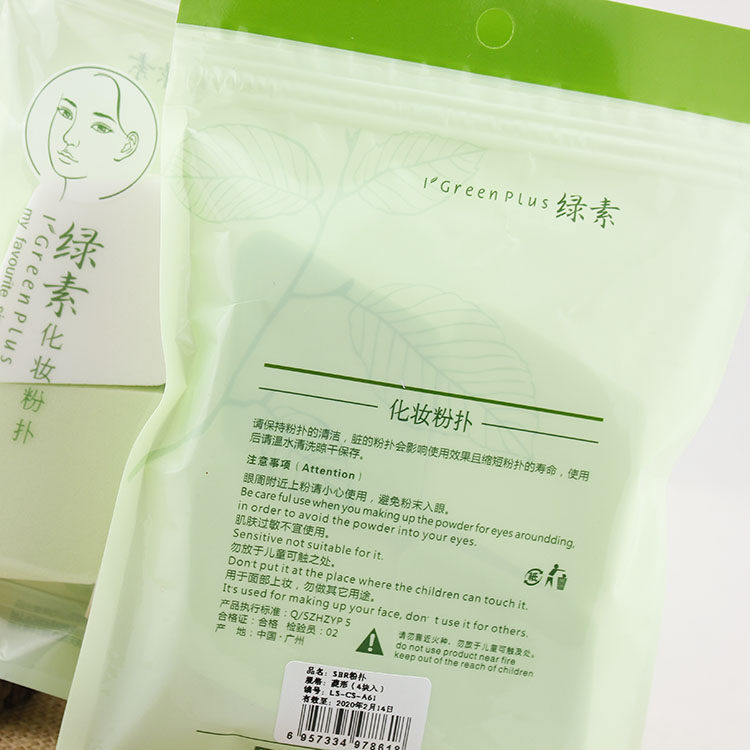 Green Vegetarian SBR Powder Bashing Dry Wet Duel Powder Cake Bastilts Bottom BB Cream Makeup Cotton Bashing 4 pieces