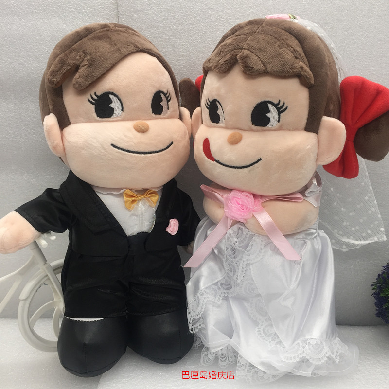 A pair of blue Stizies, a pair of black male and female Jing Er dolls, a pair of red milk girl dolls, a pair of Brown Kony rabbit dolls, a pair of Brown Kony rabbit dolls, a pair of Brown Kony Rabbit dolls,