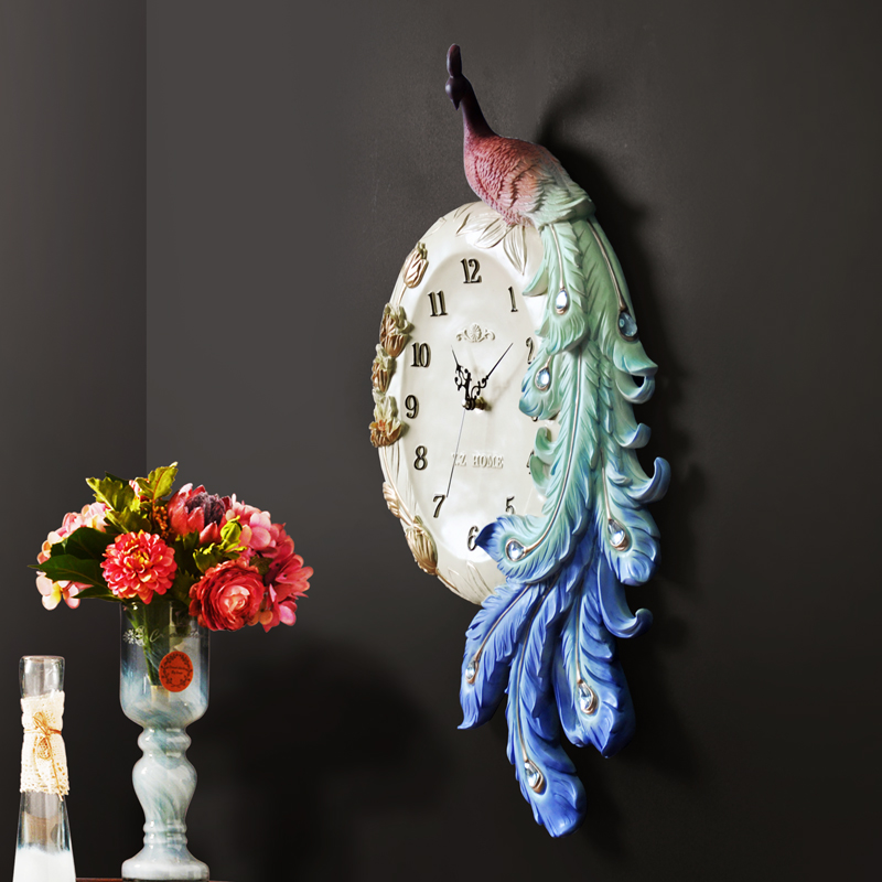 Eurostyle Peacock Hanging Clock Living Room Bedroom Ideas and watches Art Deco Decorative Hanging Watch Fashion Muted Personality Quartz Clock