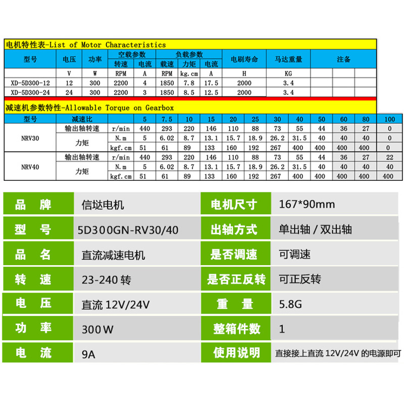 DC motor 300W High-speed motor 12V24v speed control motor Large torque positive and negative brush motor motor