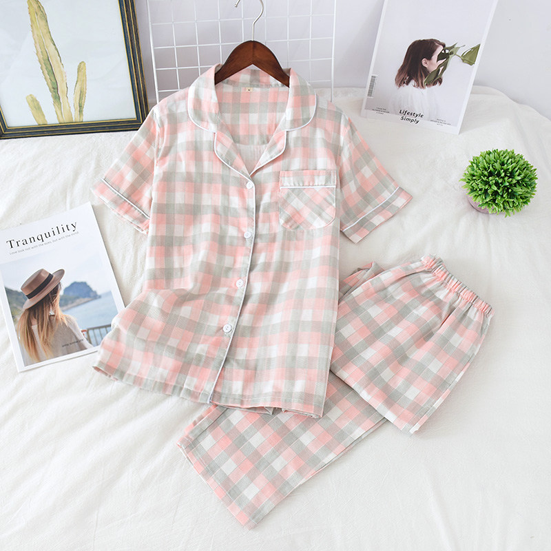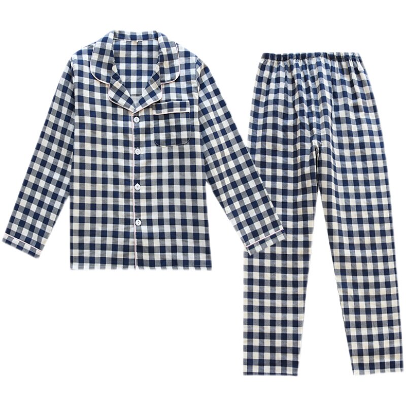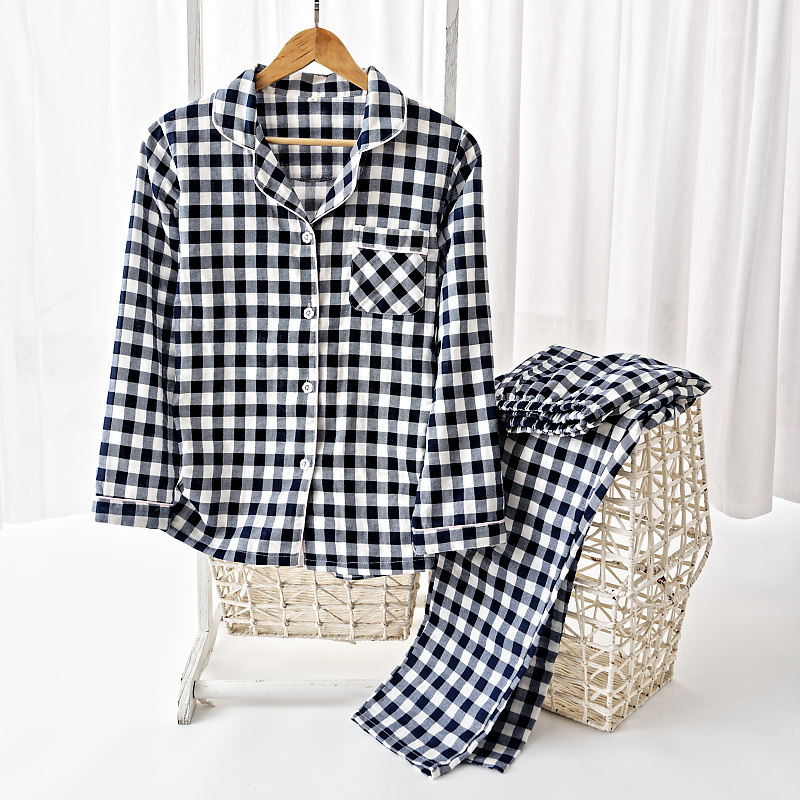 Men's blue large plaid short sleeve long pants lady pink big plaid men grey large plaid lady blue plaid pink tooth side short sleeve long pants lady grey plaid short sleeve long pants lady double layer powder grey plaid long sleeve long