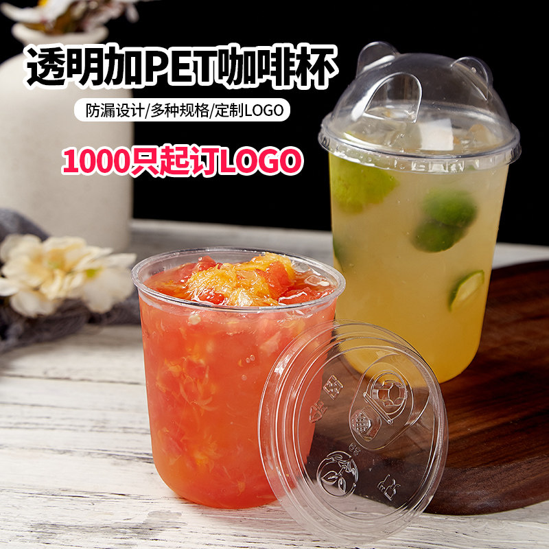 90 caliber transparent plastic PET cold drink juice cup disposable coffee milk tea cup beverage fruit packing cup